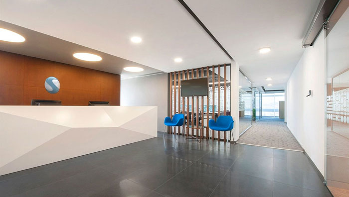 前臺的設計:在設計師眼中前臺是客戶了解企業(yè)的第一個窗口,故此一定要簡單、便捷,這也是設計師對金融公司辦公室前臺的基本定義,這樣的目的就是希望,讓客戶以最快的速度對企業(yè)有一個直觀的了解,暢通無阻的動線是保證客戶與企業(yè)之間交流的重要通道。