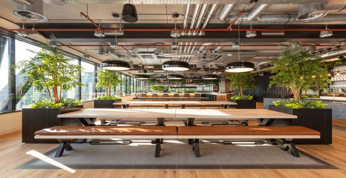 整體的設(shè)計就是將生活與工作相容,為員工提供更好的便利,一個充滿活力的辦公室空間增添了波普藝術(shù)作品中的一些自然元素作為裝飾,搭配家具的使用,柔和原始建筑的粗糙感,整個空間設(shè)計的非常有活力,正是對公司理念:“更好的工作、更好的生活”相呼應(yīng)。