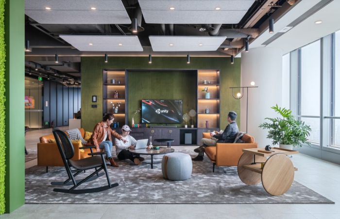 這是一個外企科技公司的辦公室空間,面積為3600平,該辦公室的設計注重將本地特色與全球標準的辦公環境相結合,旨在為創作者、合作伙伴和客戶提供一個共同創新和交流的平臺。設計師運用創意和真實的材料,致敬 Unity 的價值觀,即賦予所有創作者力量,實現他們的創意。