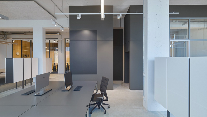 辦公區(qū)域細(xì)節(jié)的設(shè)計:此處可以看出設(shè)計師在辦公桌的選擇上,可謂是煞費(fèi)苦心,設(shè)計師的目的就是希望簡單可以進(jìn)行到底,設(shè)計師希望為員工打造一個舒適、輕松的辦公場所,辦公桌在員工平時的辦公中意義十分重大,故此設(shè)計師希望員工可以自己去安排辦公桌上的裝飾,這可以最大程度上照顧到每一個人。