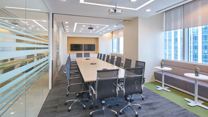 會(huì)議室的設(shè)計(jì):此處結(jié)合了會(huì)議室與交流區(qū)域,這也是設(shè)計(jì)師偶然的突發(fā)奇想,窗邊的交流區(qū)域,在會(huì)議開展的時(shí)候可以容納更多的會(huì)議人員,在平時(shí)也可以做為與客戶之間的交流區(qū)域,設(shè)計(jì)師的設(shè)計(jì)理念就是處處都是實(shí)用的,處處都是一種生活的態(tài)度。
