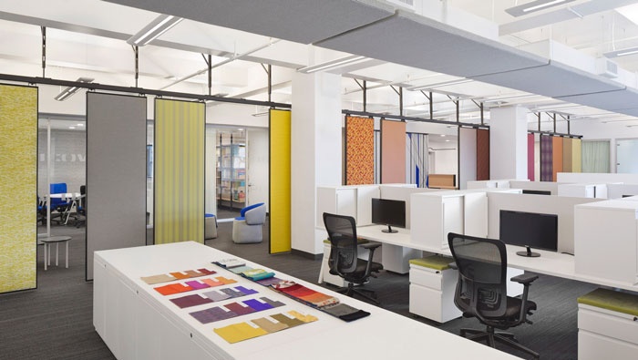 辦公區(qū)域的設(shè)計:懸掛的隔斷如一扇扇門將辦公區(qū)域擋在視線之外,但懸掛的隔斷不是死的而是靈活的,一扇扇可拉可合,開放的辦公區(qū)加上半封閉的個人辦公區(qū),兩者之間形成一個很好的結(jié)合,這樣的設(shè)計旨在消除弊端,同時也在為企業(yè)營造利于發(fā)展的辦公新格局。