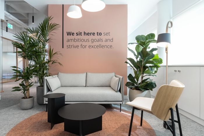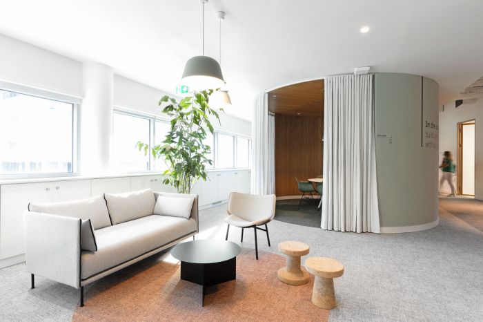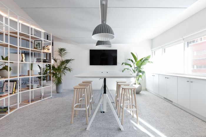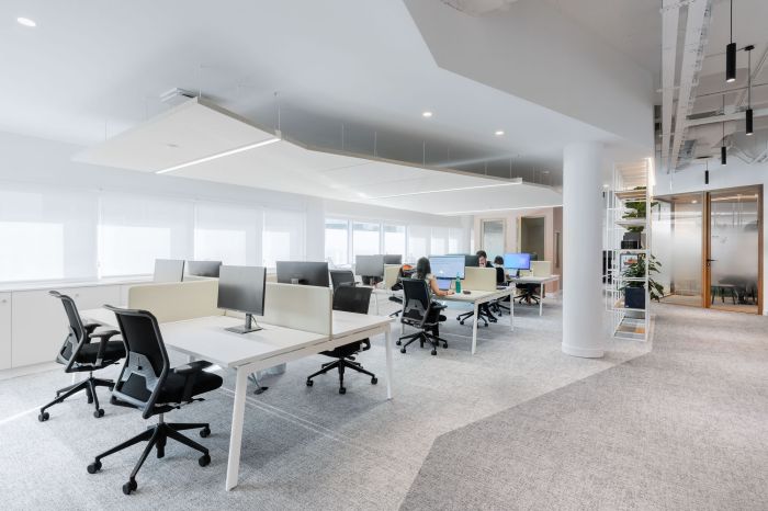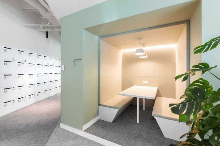 這些區(qū)域有相鄰的休息室空間、電話亭和非正式會議空間,可以滿足員工的多種需求,增加整個(gè)空間的利用率。工作區(qū)擁有大量的自然光和植物,提供了寧靜的氛圍。