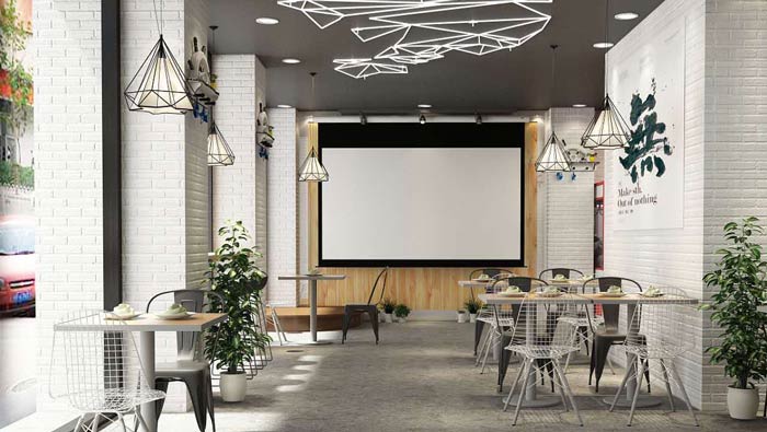 茶飲茶餐廳投影機設計:這里也同樣接受小范圍的聚會與party,年輕人在這里舉行各自范圍內的小型聚會,這里也是一個不錯的場地,在這愜意、舒適的茶餐廳,讓朋友們開心、舒心。