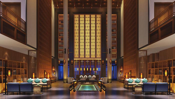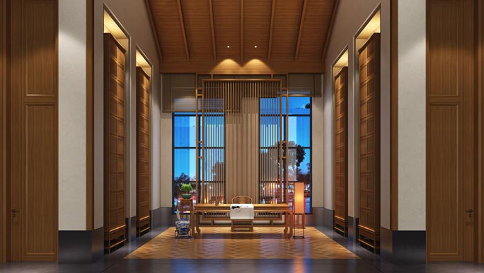 酒店大廳的設計:當客戶進入大廳之后,會給人以巨大的視覺沖擊,這也是設計師希望看到的,在這里顧客將體驗到大成中式設計的魅力,同時對中華文化有一個全新的認知,這樣的設計與造型不僅讓人嘆為觀止,這充分彰顯中華民族的智慧和力量,讓人對身為中華民族的一份子感到自豪,以此展開對當地文化的進一步了解。