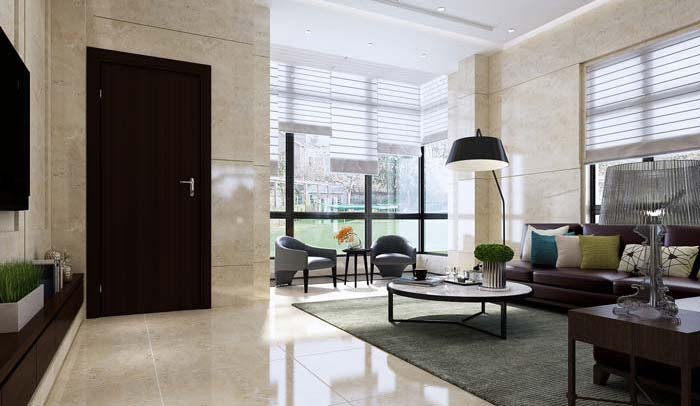 在別墅室內西墻增開了很多落地窗,增加采光又讓空間通透。