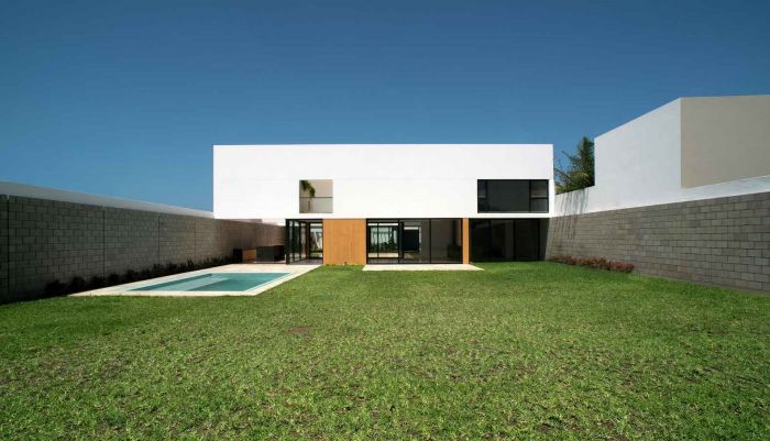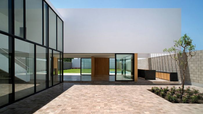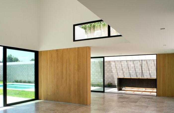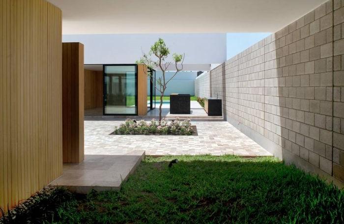 極簡別墅帶有大自然氣息,U字型的別墅設(shè)計棱角分明。在住宅中的庭院或者其他的空曠空間往往被定義為是一個等價空間,沒有一個特定的作用。不過,這樣的空間在一個景觀設(shè)計中卻是必不可少的,界限模糊的原始空間往往會被設(shè)計師們改造成不同的風(fēng)格種類。