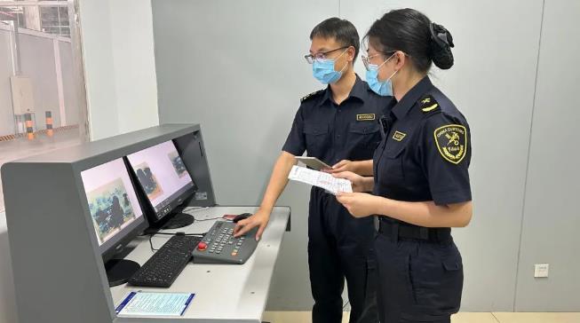 8月2日,中國鄭州機場海關(guān)關(guān)員用X光機對進口貨物開展非侵入式查驗。新華社發(fā)(鄭州機場海關(guān)供圖)