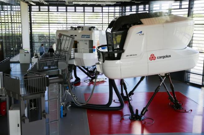 8月1日,工作人員在盧森堡貨航總部的飛行模擬器區(qū)域工作。新華社記者 鄭煥松 攝