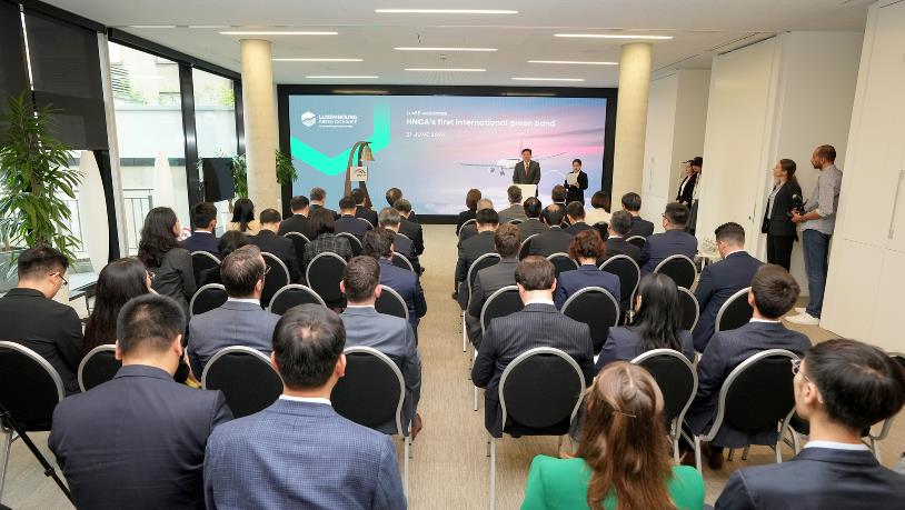 當地時間6月21日上午,中豫航空集團以河南航投為主體發行的3年期人民幣境外債券上市儀式在盧森堡證券交易所舉行。這是中國企業在歐洲發行的首只支持可持續航空燃料(SAF)的綠色債券,也是河南企業發行的首只離岸人民幣綠色債券,鄭盧“空中絲路”資金融通實現新突破。