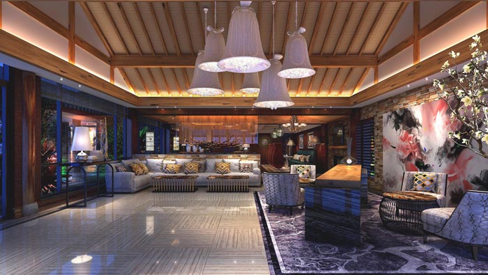 本次為度假精品酒店裝修設計項目,設計師在剛接觸此處項目的時候,認為此次設計是度假型的酒店設計,但是在與客戶的交流中設計師改變了原有的想法,因為客戶希望空間能夠同時兼容度假型與精品型,目的就是希望讓顧客在感受到度假氣息的同時,也可以在細節上感受到酒店的服務。