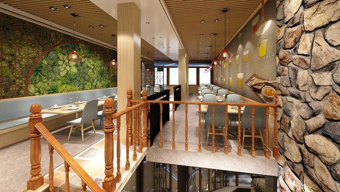 本次為連鎖中式快餐店裝修設計方案,在本次連鎖快餐店設計中,因為本次快餐店是兩層,故此設計師在設計中,重點要做的就是兩層空間之間的銜接,中式風格的設計讓空間區別于其他快餐店,這是為了打造適合自身發展的快餐店設計,在設計師看來中式設計,符合企業未來的發展趨勢。