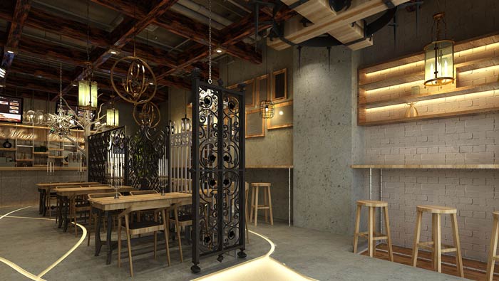 特色快餐店餐區裝修設計:餐區氛圍吧臺區【單人區】、雙人區、四人區三種模式,這是根據商業廣場客戶的屬性所決定的,這樣可以最大化的實現分流,以此增加餐廳的待客。