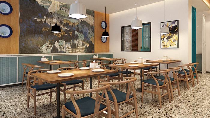 燜面館餐區(qū)氛圍設(shè)計(jì):崇山峻嶺、花鳥樹木、山水相依,設(shè)計(jì)師希望讓客戶在這樣的氛圍中就餐,雖然不是真實(shí)的,但是在這里也是聊勝于無(wú),讓客戶在這里享受到生活本來(lái)的模樣。