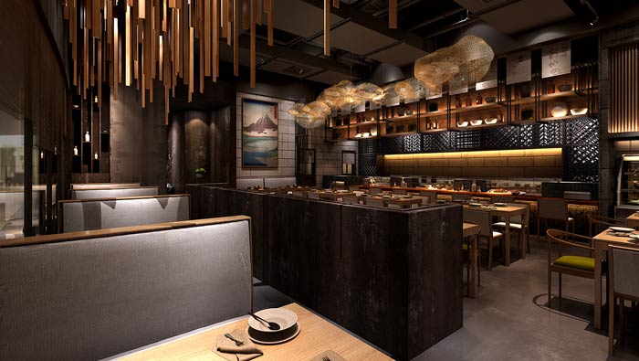本次為日式料理餐廳裝修設計方案,在本次日式餐廳的設計中,設計師首先需要做的就是將其本土化,任何外來的東西,不經過改變都是難以生存的,餐飲設計更是如此,故此設計師在日式餐廳的基礎上,進行了調整與優化,讓其更加實用中國市場,只有如此餐廳才能生存,才能涅槃重生。