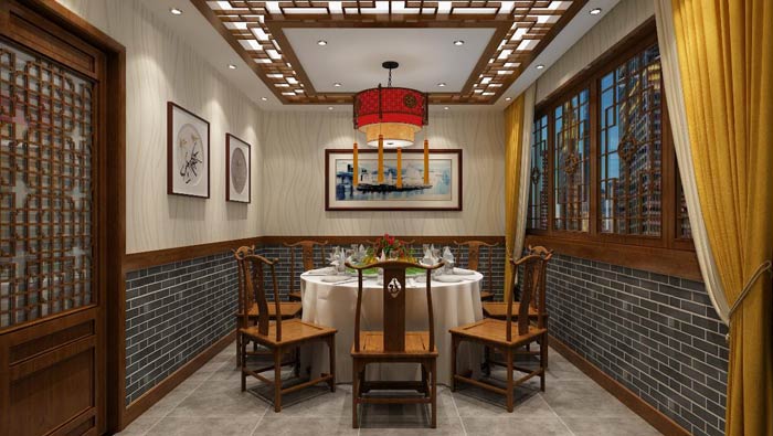 農(nóng)家私房菜內(nèi)包廂設(shè)計(jì):內(nèi)包廂相對(duì)于外包廂相對(duì)小一些,這里可以容納8個(gè)人,內(nèi)部中式、外部現(xiàn)代,讓人在古代、現(xiàn)代之間感受到生活的變換,在這里享受生活的美好。