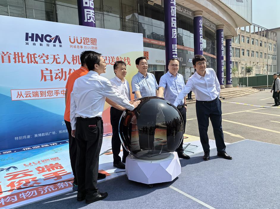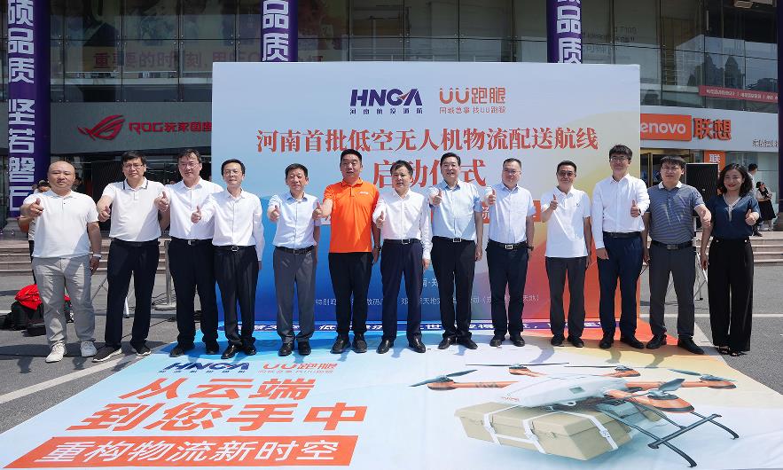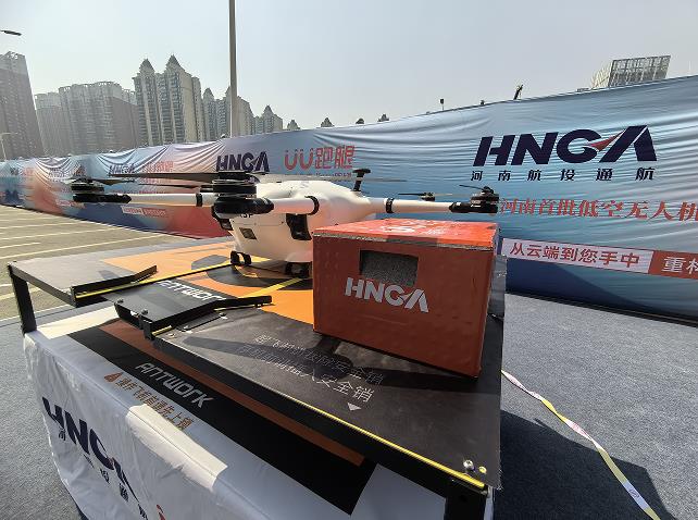 5月18日上午10時許,一架物流無人機從河南科技市場數碼港垂直升空,12分鐘后按既定路線平穩降落在新天地通訊大廈,河南首條低空無人機物流配送航線成功首飛。