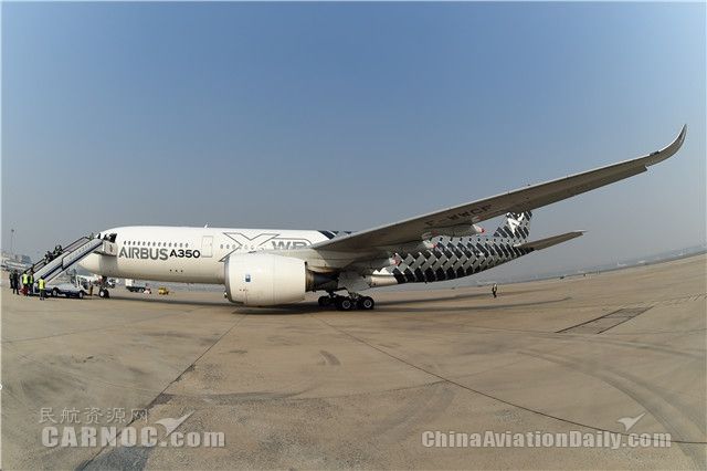 11月2日一架身披碳纖維特殊涂裝的空客A350-900測試飛機飛抵北京首都國際機場,并在11月3日進行展示。A350是目前世界上最先進的遠程寬體飛機。北京是空客A350中國巡演活動的第三站,之前這架生產(chǎn)序列號為MSN2的測試飛機已經(jīng)訪問了珠海和海口,接下來它還將飛抵上海、廣州和成都進行靜態(tài)和飛行展示。