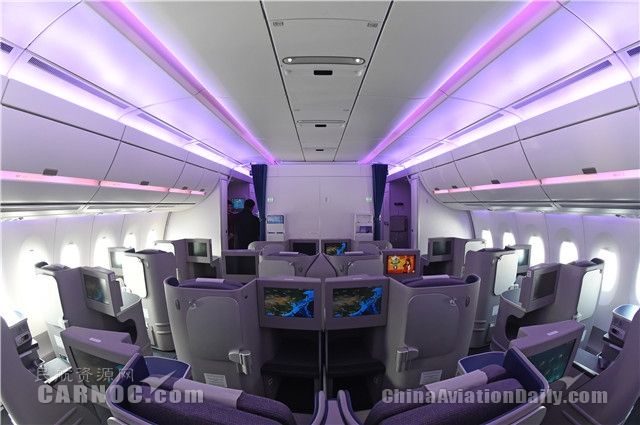 MSN2采用兩級客艙布局,商務(wù)艙擁有42個可全平躺的座位,經(jīng)濟艙擁有210個座位。A350樹立了最新的乘坐舒適性標(biāo)準(zhǔn),乘客無論身處哪個艙位,都可以獲得更大的個人空間。另外,A350客艙還擁有更大的舷窗、更大的頭頂行李艙,以及最新一代機上娛樂系統(tǒng)和空中上網(wǎng)功能。