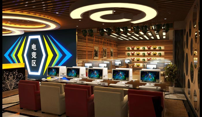 考慮到網咖總面積400平方,所以在燈光上面,設計師以科技感的燈光效果為主,滿天星的裝飾燈光,營造出靜謐的安靜上網空間,競技的環境,給客戶身在其中之感。