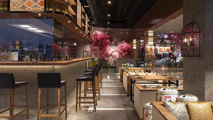 特色小吃店餐區裝修設計:特色小吃配上特色的室內設計,讓客戶在這里感受到的不僅是美味的小吃,同時感受到的還有室內溫馨的環境,這樣的搭配讓小吃店擁有更多的競爭優勢。