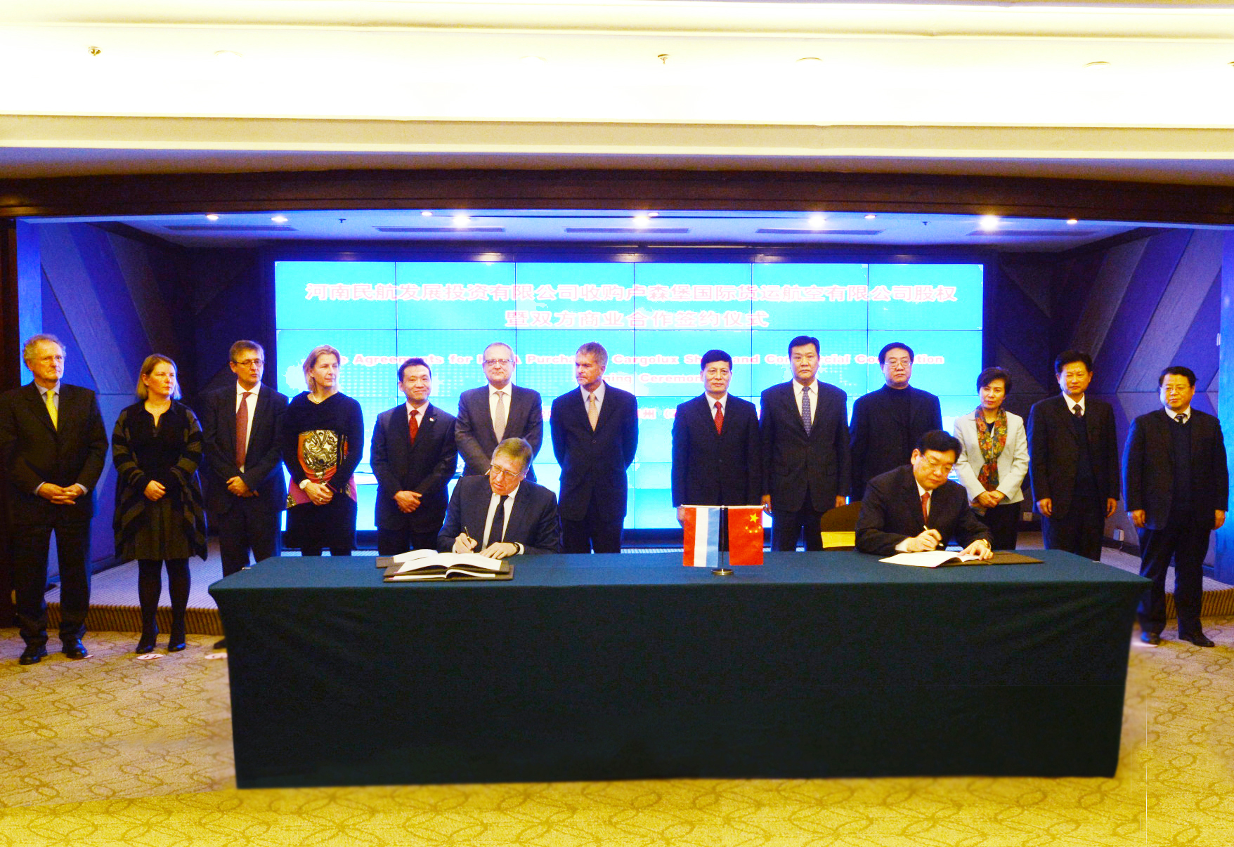 1月14日下午,河南航空業(yè)又迎來一樁盛事:河南民航發(fā)展投資有限公司(以下簡稱河南航投)收購盧森堡國際貨運航空公司(以下簡稱盧貨航)股權暨雙方商業(yè)合作簽約儀式在鄭州舉行,河南航投董事長、黨委書記張明超分別與盧森堡可持續(xù)發(fā)展與基礎產(chǎn)業(yè)部部長弗朗索瓦?鮑施、盧貨航董事會主席保羅?海明格簽署了相關協(xié)議。這標志著國際一流的全貨運航空公司正式落戶鄭州航空港經(jīng)濟綜合實驗區(qū),該合作架起了一條橫貫中歐的貨運“空中絲綢之路”,為河南省對外開放增添了新高地。河南省省長謝伏瞻在簽約前會見盧森堡代表團并見簽。盧森堡駐上海總領事呂可為、河南省副省長趙建才,省長助理、省民航辦主任安惠元,河南航投總經(jīng)理、副董事長、黨委副書記劉建葆一同參加了儀式。
