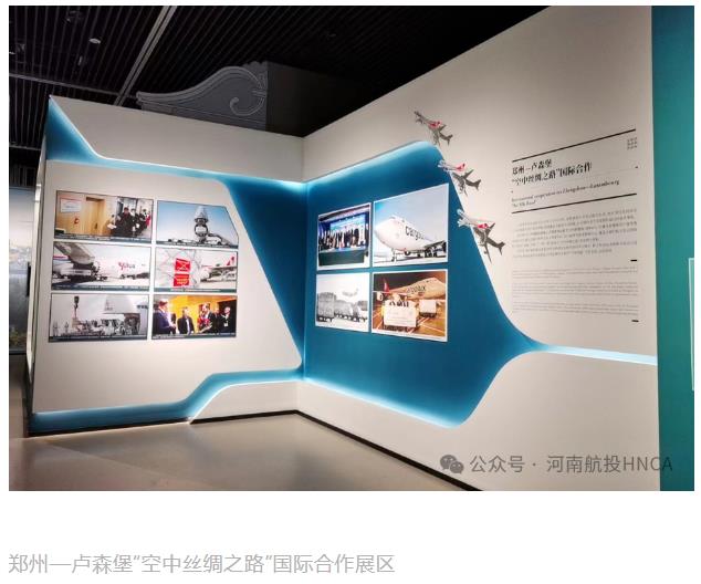 這一主題展板上,精選了10張圖片記錄豫盧共建“空中絲路”的關鍵事件。既有2014年河南航投與盧森堡貨航在鄭州簽署股權合作協議、“鄭州號”巨無霸貨機首次抵鄭的起始節點;也有這條絲路承運河南省向盧方捐贈的抗疫物資、鄭盧直飛客航首批旅客抵達的溫暖瞬間;還有盧森堡貨航在鄭州加注可持續航空燃料、鄭盧航線貨運量突破100萬噸的喜慶時刻,精彩講述豫盧雙方在“一帶一路”框架下相融互促,從硬聯通、軟聯通到心聯通的生動實踐。