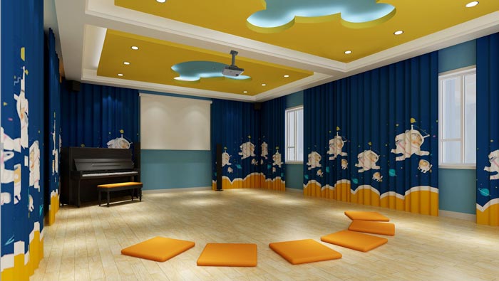 音樂教室的設計:對于每一個人來說,音樂都是美好的,對于孩子來說更是如此,當老師彈起鋼琴的時候,孩子們在后面翩翩起舞,無疑可以激發(fā)孩子們對于音樂的興趣,這里的一切都志在激發(fā)孩子的興趣,然后在興趣的指引下,達到教學的目的。