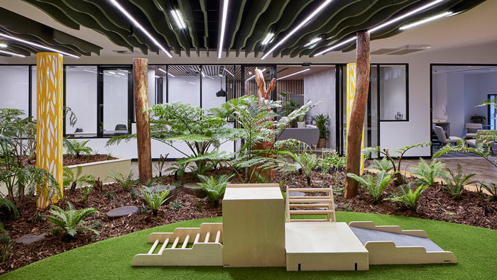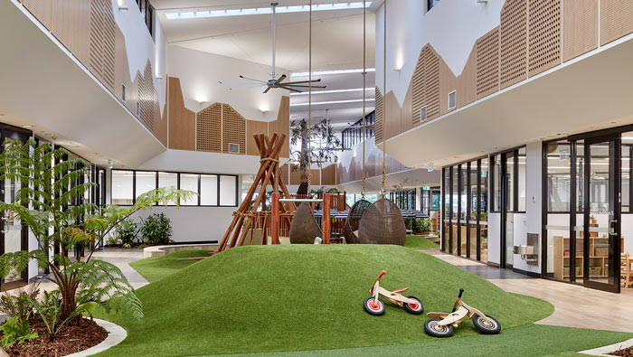早教中心自然區(qū)設計:這里還原了很多自然屬性,孩子對于世界的認識是初步的,設計師希望讓孩子在這里逐步去了解自然,讓孩子通過自己不斷的發(fā)現(xiàn),激發(fā)孩子的想象力。