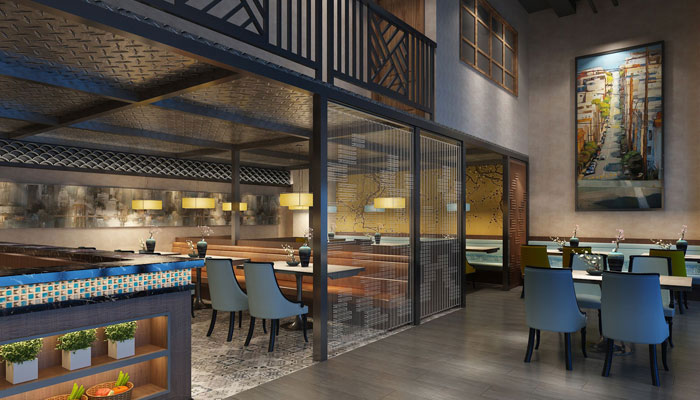 設計師希望餐廳室內的環境與氛圍給客人以輕松愉悅,同時又賦予餐廳高雅、恬靜、并賦予傳統屬性。