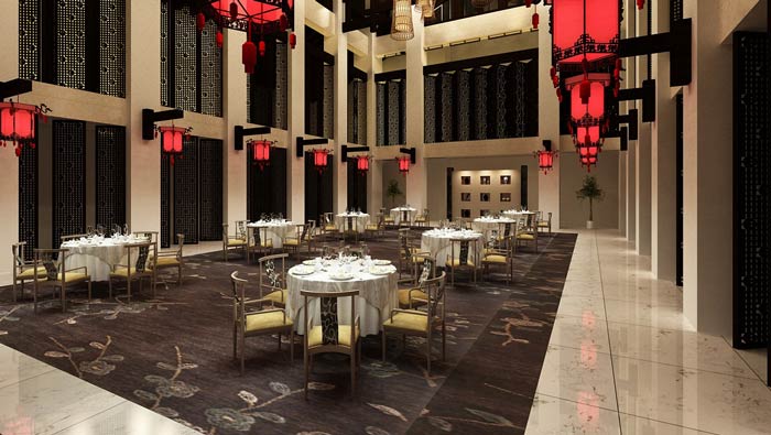 中餐廳大廳餐區(qū)設(shè)計(jì):這里在很多情況下,都是企業(yè)內(nèi)部的聚餐,整個(gè)空間的餐位都是可以調(diào)整的,或增加或減少,根據(jù)客戶的人數(shù)所定。