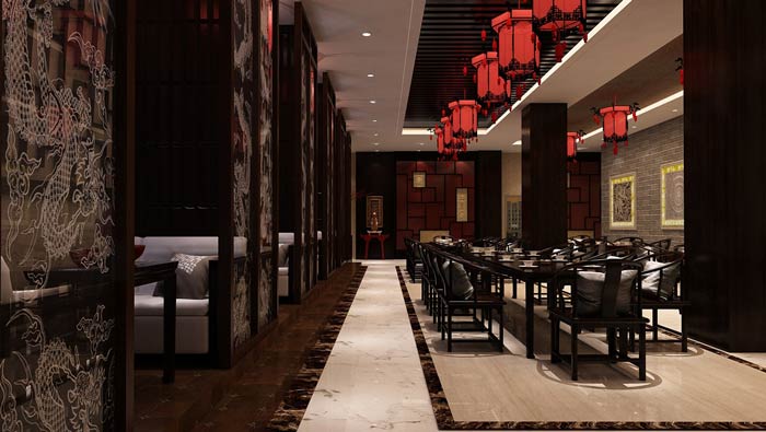 中餐廳餐區(qū)燈光設(shè)計(jì):常見的燈光被燈籠所代替,燈籠正掛于餐桌的上方,之所以這樣安置,是因?yàn)闊艋\的光是柔和的,不會(huì)刺激客戶的眼睛,在這里就餐給人不一樣的感受。