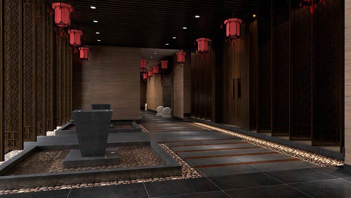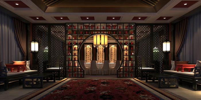 中餐廳過道設(shè)計(jì):過道的燈光設(shè)計(jì),設(shè)計(jì)師采用比明亮稍微幽暗,比幽暗稍微明亮的燈光設(shè)計(jì),這樣的設(shè)計(jì)模式,是希望讓客戶感受到柳暗花明又一村的感覺。