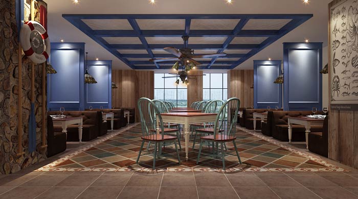 主題餐廳休息區(qū)設(shè)計(jì):當(dāng)下的社會(huì),很多人都厭倦了鋼筋水泥,這里設(shè)計(jì)師運(yùn)用逼真、復(fù)古、唯美的航海時(shí)期風(fēng)格,來緩解了人們對(duì)現(xiàn)代都市的厭倦。