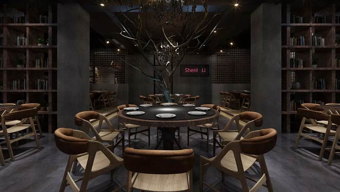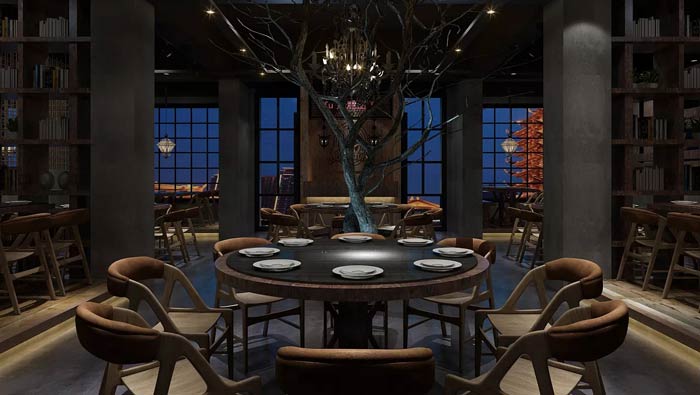 特色主題餐廳裝飾設計:中式元素強調的就是人與自然、人與物之間的關系,這里將這種關系進行了很好的融合,讓設計與建筑、與環(huán)境、與自然很好的進行融合。