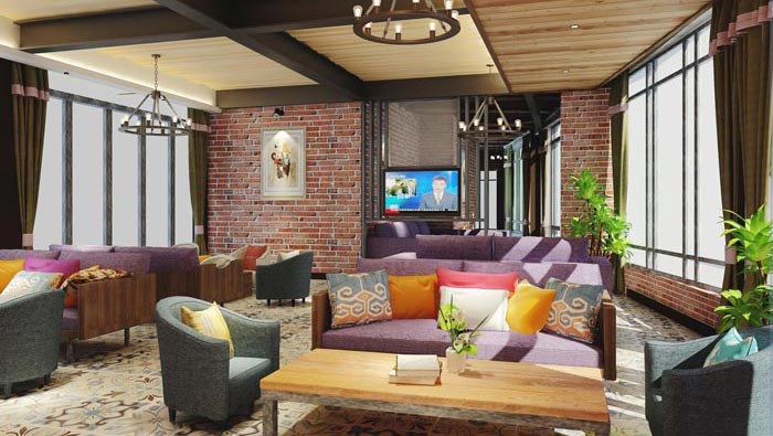 休閑區域的設計:此處是客戶們聚集的一個地方,此處給人的第一感覺就是明亮、舒適、色彩宜人,這也是設計師希望給大家展示的,在設計師看來酒店不是諸位大家提供住宿,而且有很多附加的功能,設計師就是希望透過各種不同的附加功能,讓酒店走入客戶的心中,讓客戶不虛此行。