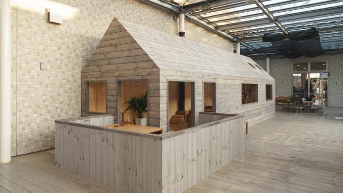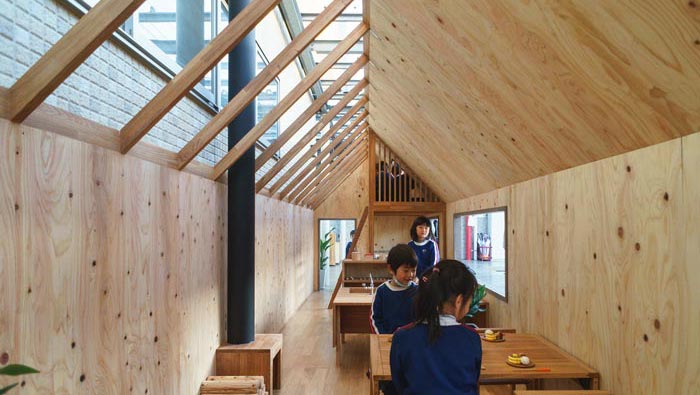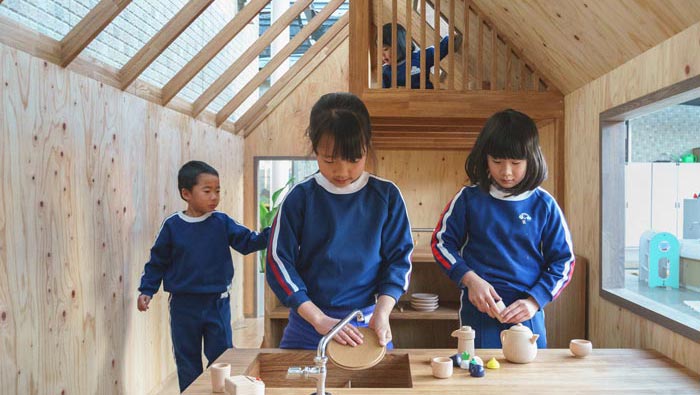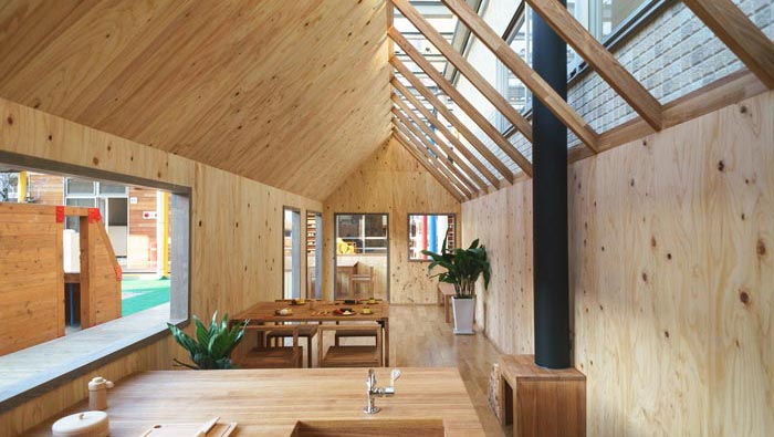 內(nèi)部空間的設(shè)計(jì):從內(nèi)向外看可以看出整個(gè)空間條理十分清晰,目的就是不希望阻礙孩子的創(chuàng)造力和好奇心,在這里教會(huì)孩子不斷理清事物,有鮮花裝飾的桌子,用餐時(shí)讓孩子自己安排自己的菜肴,在飯后小孩子自己去洗碗,目的就是為了鍛煉他們動(dòng)手的能力,讓孩子們?cè)诓粩鄬W(xué)習(xí)中成長起來。