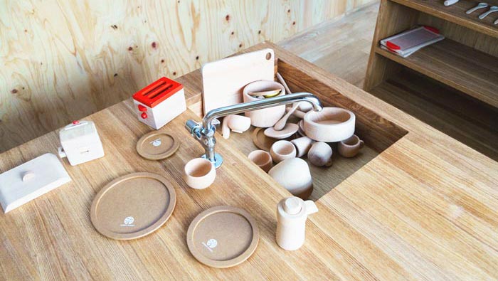 室內(nèi)整體的設(shè)計(jì):一眼望去簡單且富有規(guī)律,這也是設(shè)計(jì)師不斷優(yōu)化下的作品,此處主要是根據(jù)孩子的興趣創(chuàng)造的,在設(shè)計(jì)師看來孩子最喜歡的就是模仿大人,故此設(shè)計(jì)師以現(xiàn)實(shí)生活為模型,為孩子們創(chuàng)造了一個(gè)與現(xiàn)實(shí)生活接軌的空間,在這里孩子們可以學(xué)會(huì)來自生活的各種技能。